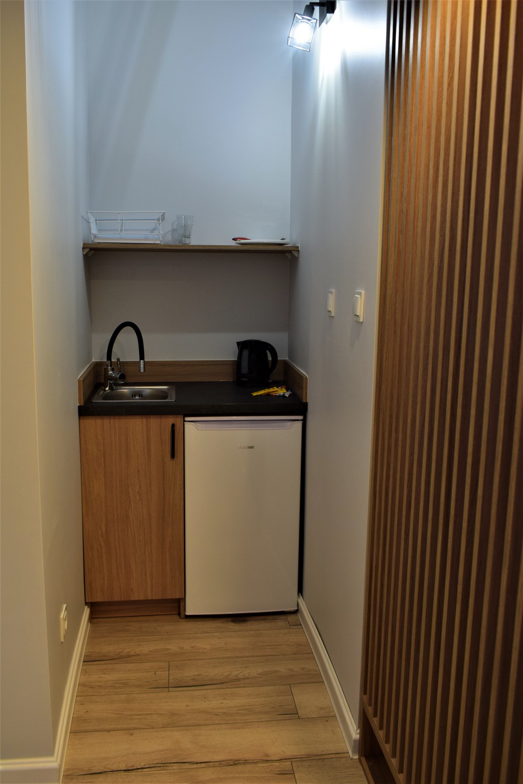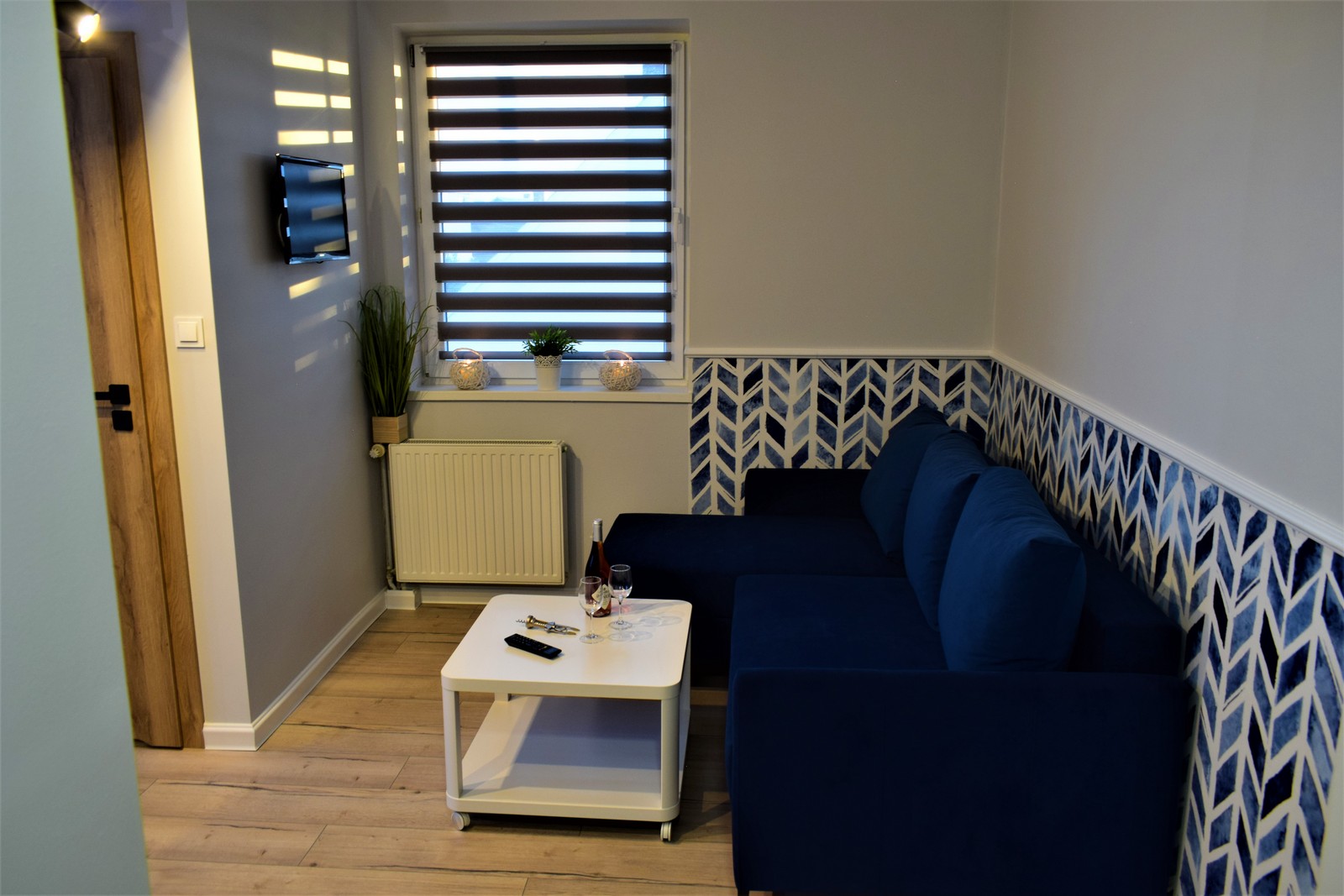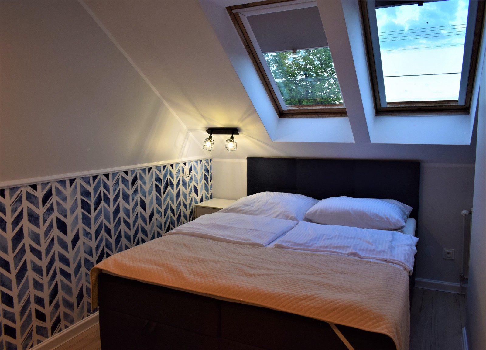 W pokoju znajdują się: komfortowe łóżko małżeńskie 160×200 cm, sofa z funkcją spania o powierzchni 150×200 cm, stolik kawowy, szafa, telewizor, internet bezprzewodowy (WiFi) oraz aneks śniadaniowy (lodówka, zlewozmywak, zestaw do parzenia kawy i herbaty, podstawowe naczynia). Łazienka wyposażona jest w prysznic, umywalkę, WC, lustro, ręczniki oraz zestaw niezbędnych kosmetyków (szampon, mydło).