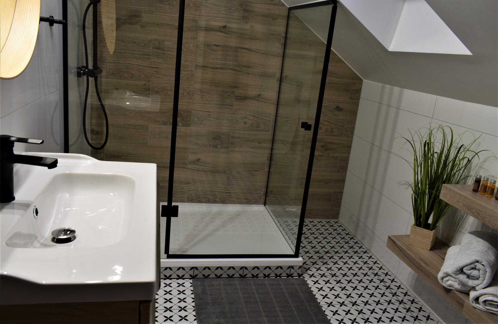 W tej części studia znajduje się także stół, krzesełka, lodówka, zestaw do parzenia kawy i herbaty oraz drugi telewizor. Łazienka jest duża i przestronna, wyposażona w obszerną kabinę prysznicową, ręczniki oraz podstawowe kosmetyki (żel, szampon, mydło). Studio przeznaczone jest dla dwóch par lub rodziny z dziećmi.